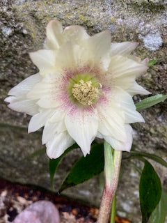 Hellebore 'Cream' showcases elegant petalled flowers with dusted coloured centre, ensuring reliable winter and spring interest. Established in a 3-litre pot and ready for immediate planting.