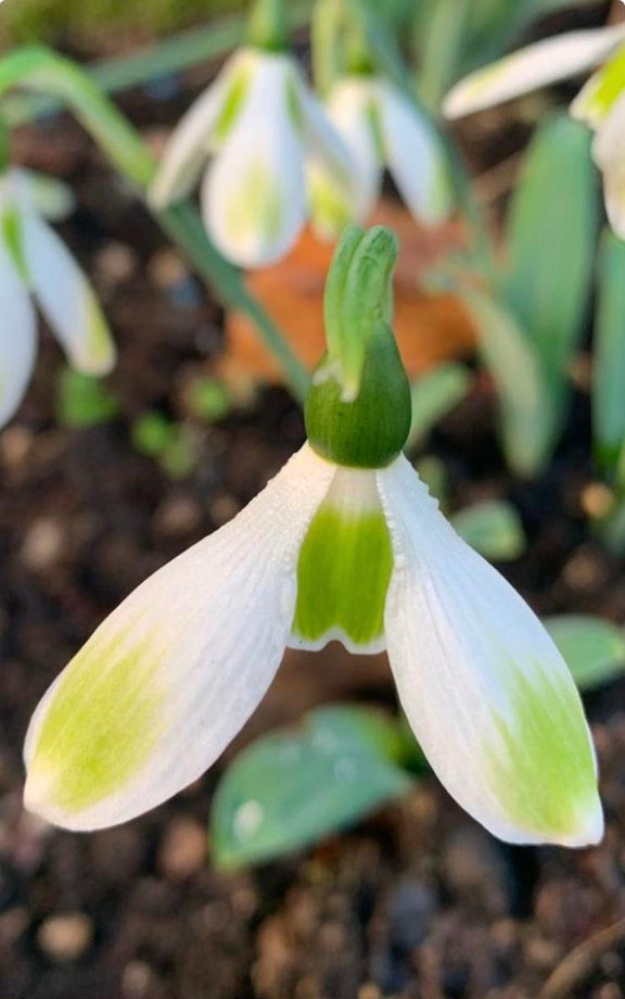 With striking green outers, deep green markings that often extend over much of the inner segments, this is considered one of the best virescent snowdrops.
