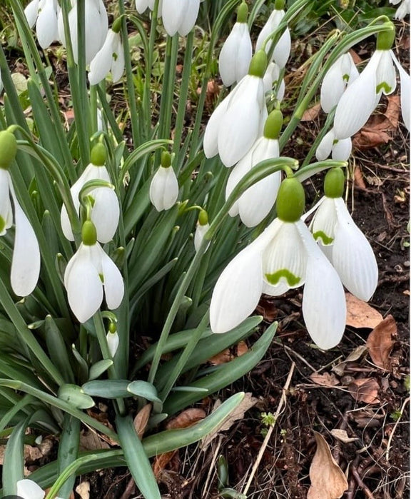 Narrow, grey-green leaves and solitary, nodding, fragrant white flowers 2.5cm in length, the inner segments with a thin V-shaped mark at the tip.